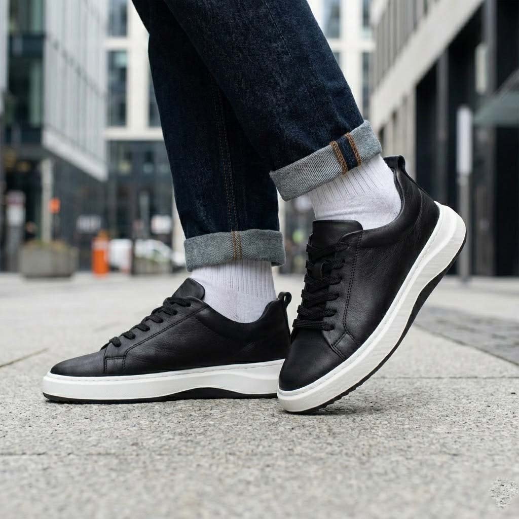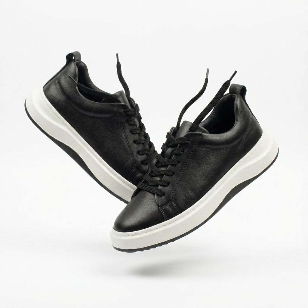 GMK Shoes’un en iddialı sneaker modellerinden biri olan Çift Renk Tabanlı Siyah Sneaker, modern tasarımı ve üstün kalitesiyle dikkat çekiyor. %100 Hakiki Nappa Deri kullanılarak üretilen bu model, pürüzsüz ve yumuşak dokusuyla lüks bir his verir.
